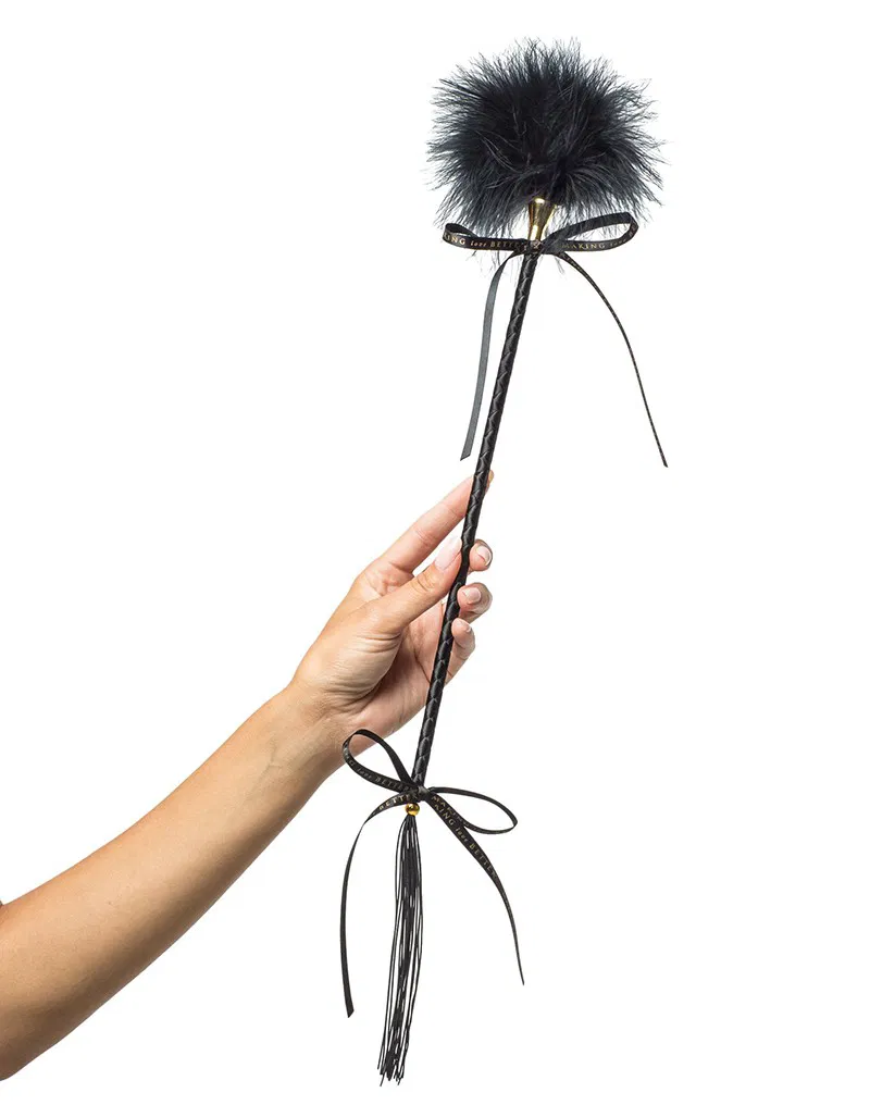 VEER TICKLER MET WHIP-toverstok met sensuele verenkietelaar aan het ene uiteinde en sexy kwastzweep aan het andere uiteinde