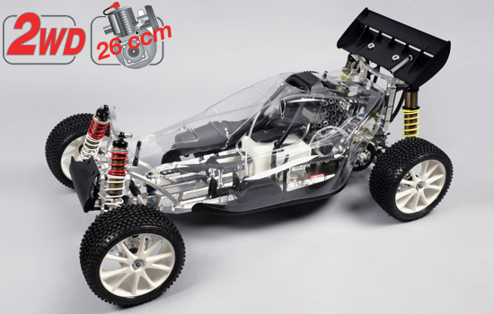 Wordt geleverd met 26cm3 motor, centrale hydraulische rem, wielen en transparante carrosserie.