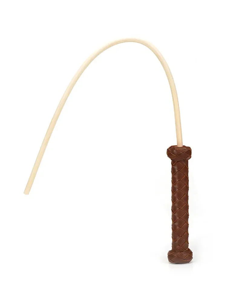 De wandelstok bestaat uit een houten handvat omwikkeld met handgevlochten, echt rundleer en een ratanstok van 43,5 cm. De totale lengte van de stok is 59,5 cm en het handvat is 16 cm.