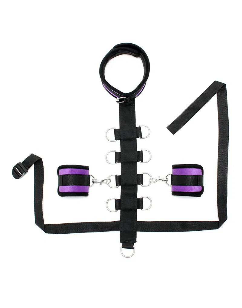 Rimba Bondage Speel zachte velco-kraag met grendelijn en afneembare zachte manchetten