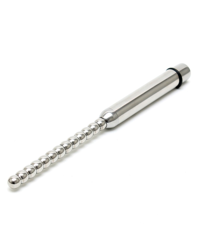 Dit roestvrijstalen vibrerende bolvormige urethrale plug is 168 mm lang en heeft een diameter van Ø 8 mm. Het wordt geleverd in een PU-hoes en werkt met 1x AAA-batterij.