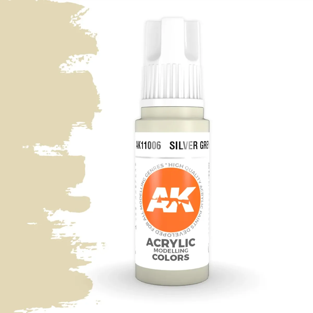 AK interactive Acrylic Modelling Colors Silver Grey maakt deel uit van het 3rd Generation programma van het merk AK interactive, speciaal ontwikkeld voor het penseel en de airbrush en is een zilvergrijze acrylverf in een 17ml. eyedropper potje met gepatenteerde dop.