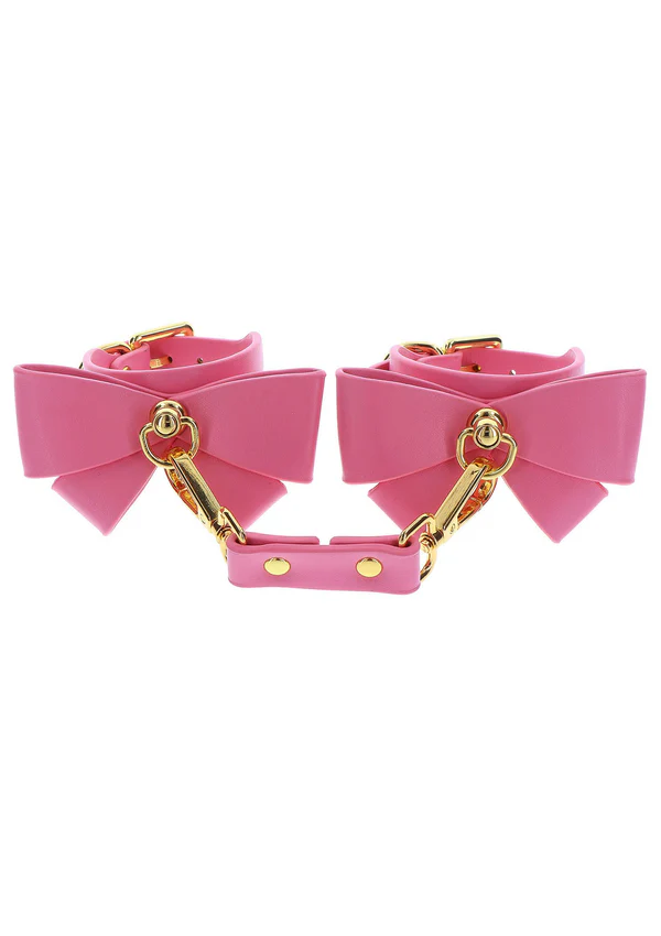 Voeg een vleugje schattigheid en sensualiteit toe aan je bondage collectie met deze Taboom Malibu Polsboeien. Omarm je speelse kant met deze roze vegan PU lederen boeien, versierd met een charmante strik en verleidelijke details van verguld metaal. Meng stijl en plezier, verken de wereld van bondage, of draag ze als een modieuze statement. De verstelbare pasvorm zorgt voor comfort en veiligheid tijdens intieme momenten. De stevige clips en ringen bieden verschillende speelmogelijkheden, met eindeloze mogelijkheden voor beperking en plezier. Laat je meeslepen in gepassioneerde avonturen en uitdruk je unieke stijl met deze prachtige polsboeien.